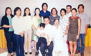 ![]() ![]() ![]() (from left) Danny and Joy kiss at the reception; slice the wedding cake; and best man Roland Tolentino leads the toast at the University Hotel in UP Diliman, Quezon City on December 28, 2004.